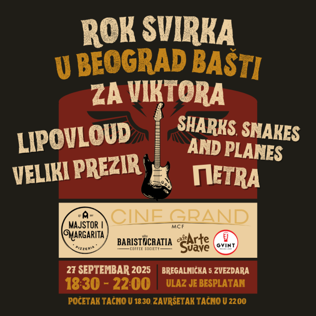 Koncert su podržali: Picerija Majstor i Margarita, Cinegrand MCF, Baristocratia, kafe Arte Suave i pivara Gvint.